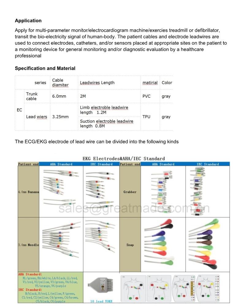 1. 제품 이름 Comaptible Welch Allyn CT 100 ecg 도선, 10- 리드, EKG 케이블 연결 2. 호환 브랜드 Welch Allyn CT 100 3. 제품 사양 4.Application 멀티 파라미터 모니터 / 심전도 기계 / 운동 디딜 방아 또는 제세 동기, 운송 신청 ...의 생체 전기 신호