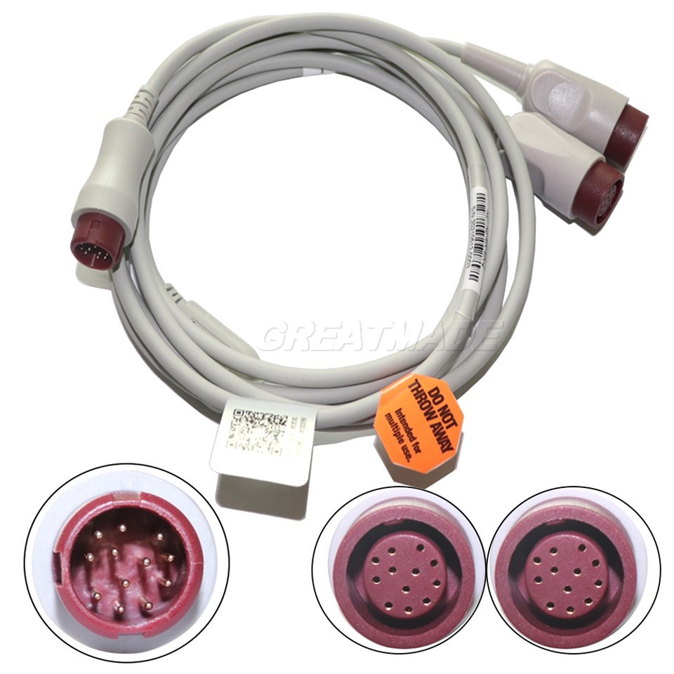 MindRay 호환 압력 트랜스 듀서 인터페이스 케이블, 12pin 플러그에서 12pin 소켓*2