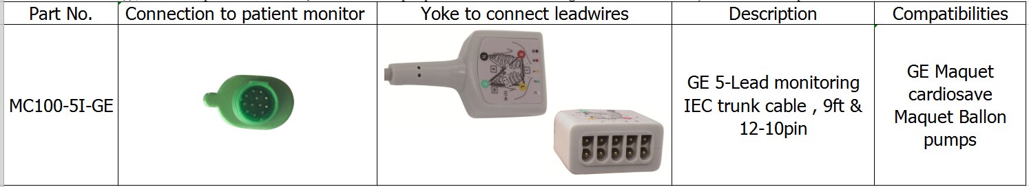 호환 가능한 GE MAQUET 벌룬 펌프 5- 리드 모니터링 IEC 트렁크 케이블, 9FT 및 12-10 핀